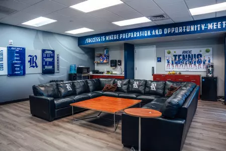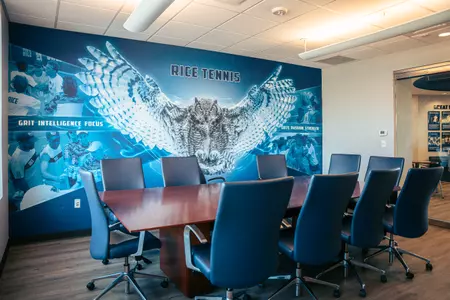 The sprawling 126,000-square-foot complex, located adjacent to the Brian Patterson Sports Performance Center at Rice Stadium, serves as the home for tennis at Rice at all levels (NCAA, intramural, and the Rice Tennis Club). It features 14 courts; seating for 600 divided equally between the six main competition courts; a plaza area, with additional seating as well as a 9,000-square-foot administrative building that houses locker rooms and team lounges for both the Rice men's and women's team; meeting rooms, coaches offices, and locker rooms for the Rice Tennis Club, which also will serve as locker rooms for visiting teams on competition days.