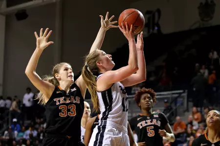 The Longhorns had three players score in double-figures, led by junior guard Brianna Taylor's 17 points. Sophomore guard Brooke McCarty chipped in 11 points while freshman guard Lashann Higgs scored 10 points. Texas shot 47 percent from the field compared to a 33 percent clip from the Owls while the Longhorns also won the battle in the paint (46-12), points off turnovers (27-7) and bench scoring (30-12).
