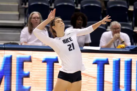 Livingstone, from Malibu, Calif., tied Utah's Carly Trueman with a match-high 14 kills on 23 attacks (.609) and no errors. Rice junior setter Madison McDaniel just missed out on a potential fourth double-double of the season with 31 assists and 9 digs.
