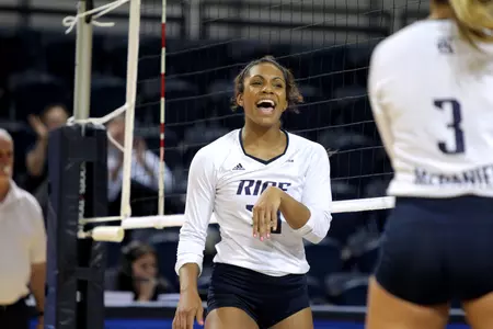"We survived a tough match tonight," Rice head coach Genny Volpe said. "We put ourselves in a jam in sets three and four by not taking care of the ball. It was sloppy for sure, but we executed our best volleyball in set five. We started looking more like Rice volleyball. We will keep working on that consistency but we are all feeling fortunate with the outcome."