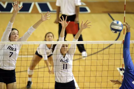 Rice (13-5, 3-1) recorded a season-high 19.0 team blocks in the victory and three Owls recorded 10 or more kills, led by a team-high 16 from sophomore middle blocker Grace Morgan. The Crowley, La. Native hit a staggering .615 (16-of-26) for the match and also totaled eight blocks for a team-high 21.0 points.