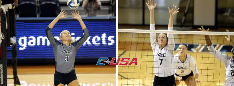 IRVING, Texas - Rice senior setter Madison McDaniel was named the Conference USA Setter of the Week while sophomore teammate Grace Morgan earned C-USA Defensive Player of the Week, the league office announced Monday afternoon.