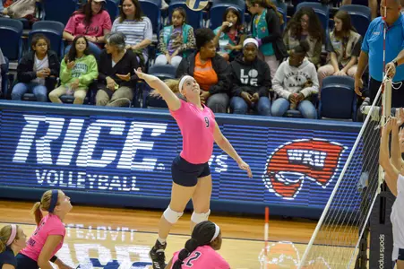 "WKU played a great match and set the tone early," Rice head coach Genny Volpe said. "They were in control from the beginning of the first set. The velocity of some of their attacks took some of our players off guard. You can scout them on video and prepare for them, but I think it took our team just a little too long to get adjusted to them. Unfortunately, for us they just flat outplayed us. We started to make some strong adjustments after the break and had some opportunities but just didn't take advantage."