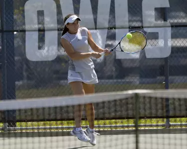 But the Owls served immediate noticed that the early setback did not carry over into singles as they took first sets on all six courts. Katherine Ip quickly tied the match with a 6-0, 6-3 on court two, and Alison Ho, Zhang and Savannah Durkin followed in succession to give the Owls (14-5) their fifth consecutive win and run their home record to 10-0.