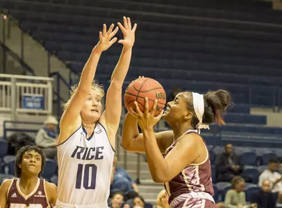 After falling behind by as much as 40-33 in the third quarter, Rice responded with 9-2 run of their own to tie the game at 42-42 on a jumper from Erica Ogwumike.