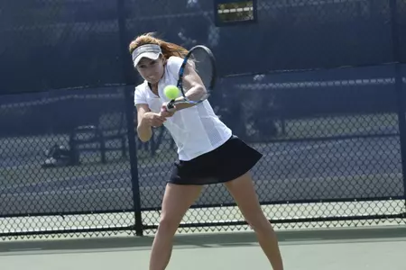 Senior Savannah Durkin closed out a stellar run of singles play at the conference tournament by running her career mark to 10-0 with a 6-2, 6-0 win over Mina Markovic to tie the match at 1-1.