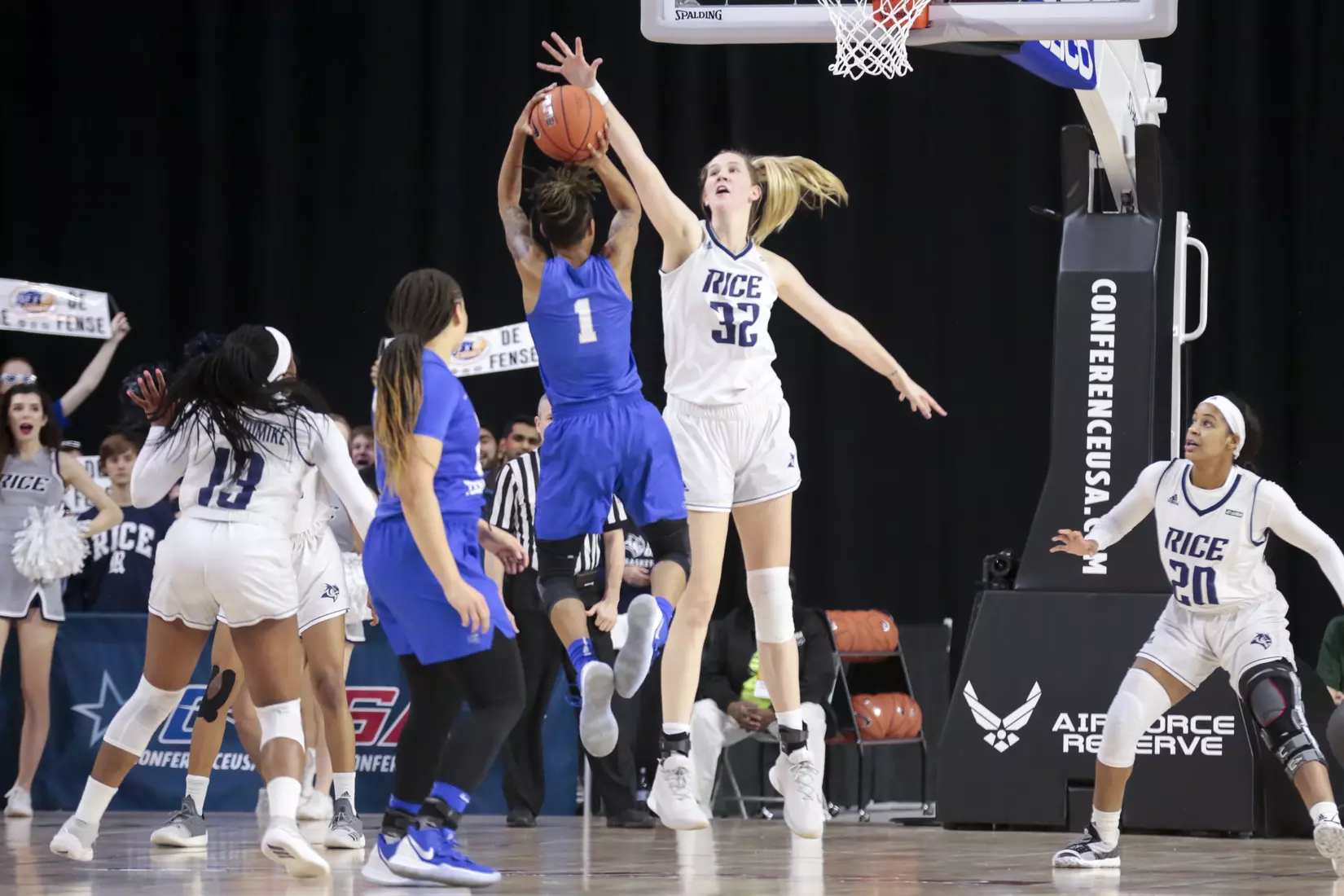 Sophomore center and C-USA Defensive Player of the Year Nancy Mulkey led the way with a game-high 24 points on 9-of-20 shooting and broke the title game record with eight blocks in 34 minutes of action. Mulkey also shattered the Rice single-season blocks record, surpassing Lauren Neaves (83 blocks), and now has 89 blocks on the season. After the game, Mulkey was named the C-USA Championship MVP after averaging 18 points and 5.7 blocked shots over the weekend.