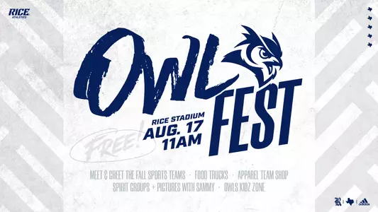 Owl Fest 2019, the free annual fan fest for Rice fall sports, is slated for Saturday, August 17th at 11:00 a.m.on the west concourse of Rice Stadium. The Owls will host an open scrimmage for the football team followed by autographs members of the football, soccer, and volleyball team. The event will give members of the Rice Family their first chance to celebrate the start of the upcoming athletic season and meet and greet their favorite players and teams!